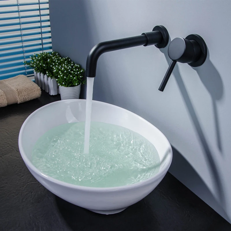 Modern Brass Wall Basin Mixer Tap Bathroom Kitchen Sink Faucet Swivel Spout Bath With Single Lever