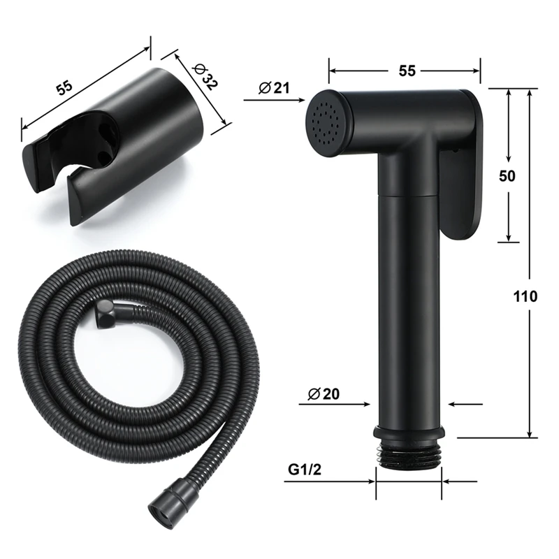 BEST QUALITY Black Handheld Bidet Spray Shower Sprayer Set Toilet Faucet Shower Bidet with Hose and Holder Bathr