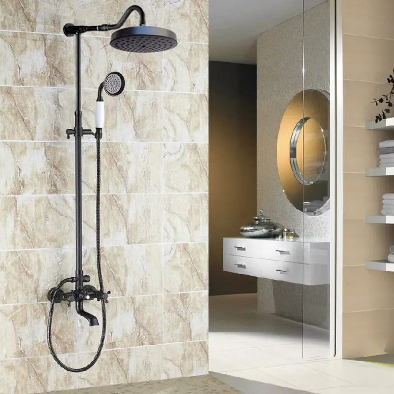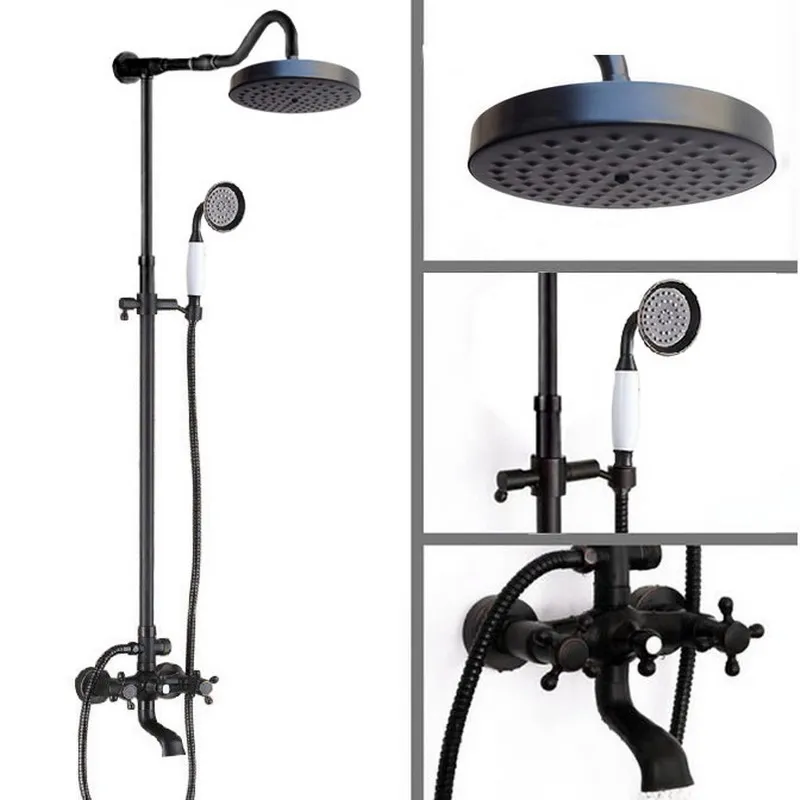 Black Oil Rubbed Brass Dual Cross Handles Bathroom Rainfall Rain Shower Head Faucet Set Bath tub Mi