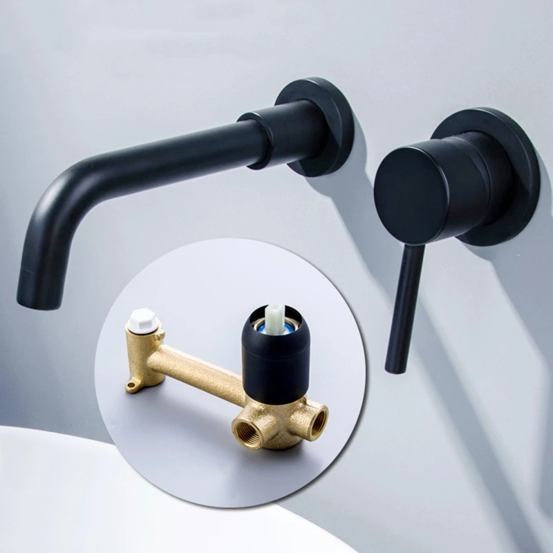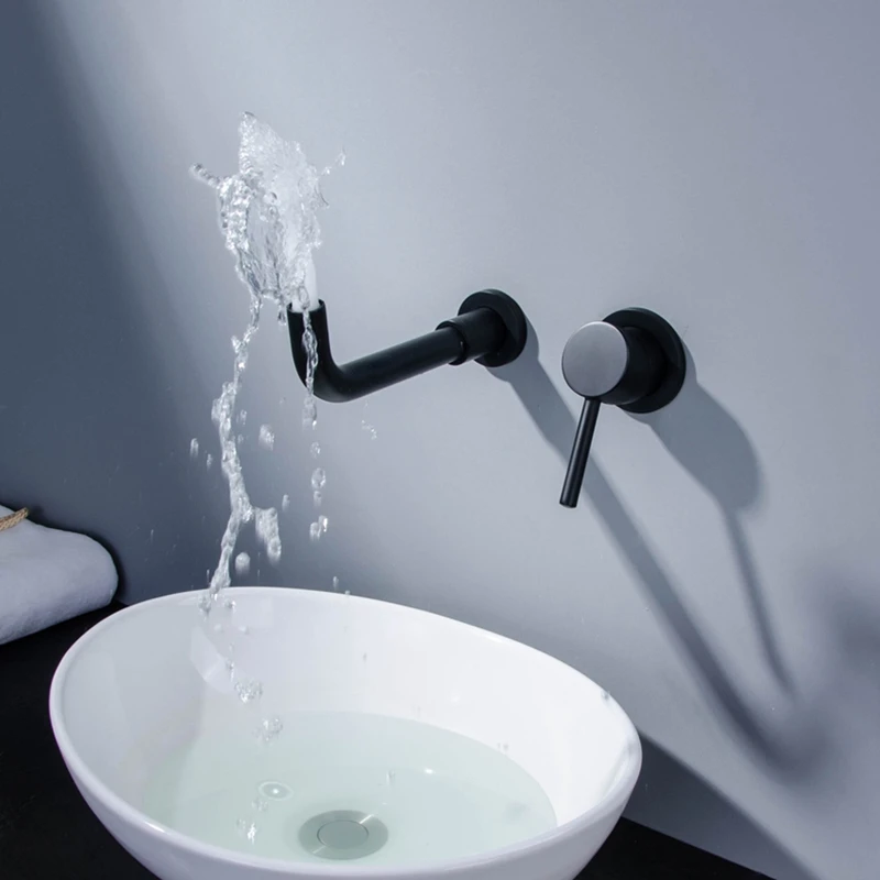 Modern Brass Wall Basin Mixer Tap Bathroom Kitchen Sink Faucet Swivel Spout Bath With Single Lever