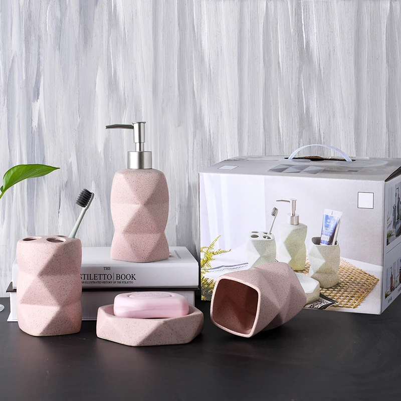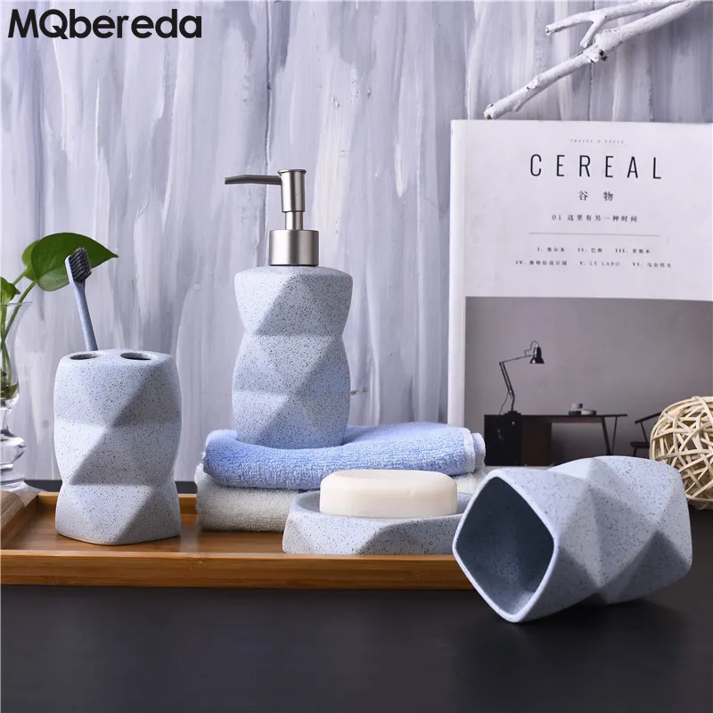 Nordic Ceramic 4pcs Set Bathroom Accessories Toilet Sanitary Brushing Suit Cup Marriage Soap Dispen