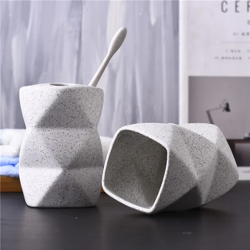 ORIGINAL Nordic Ceramic 4pcs Set Bathroom Accessories Toilet Sanitary Brushing Suit Cup Marriage Soap Dispen