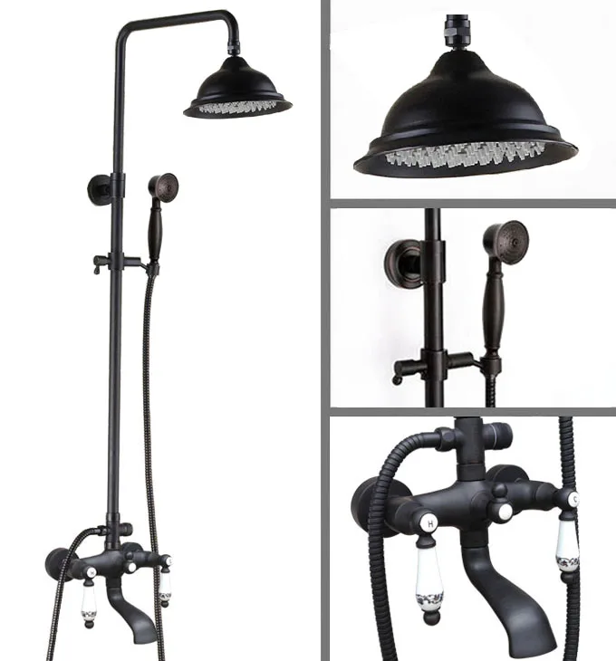 Black Oil Rubbed Brass Dual Ceramic Handles Bathroom 8 Inch Round Rain Shower Faucet Set Bath Tub M