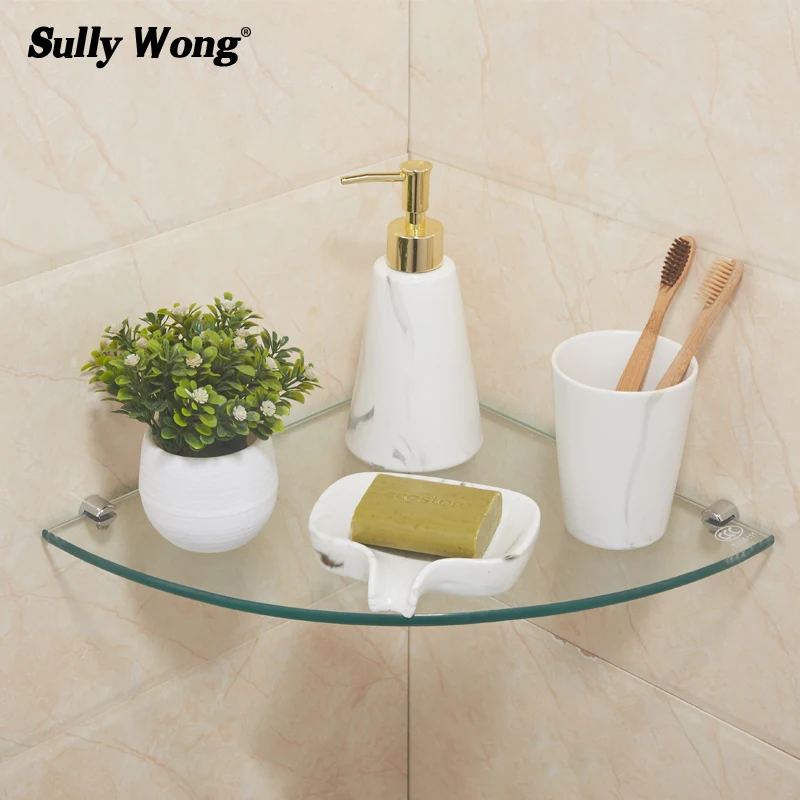 TOP Sully House Bathroom Corner 8mm Thickness Tempered Glass Shelfbathroom triangle glass shelvesbodywa